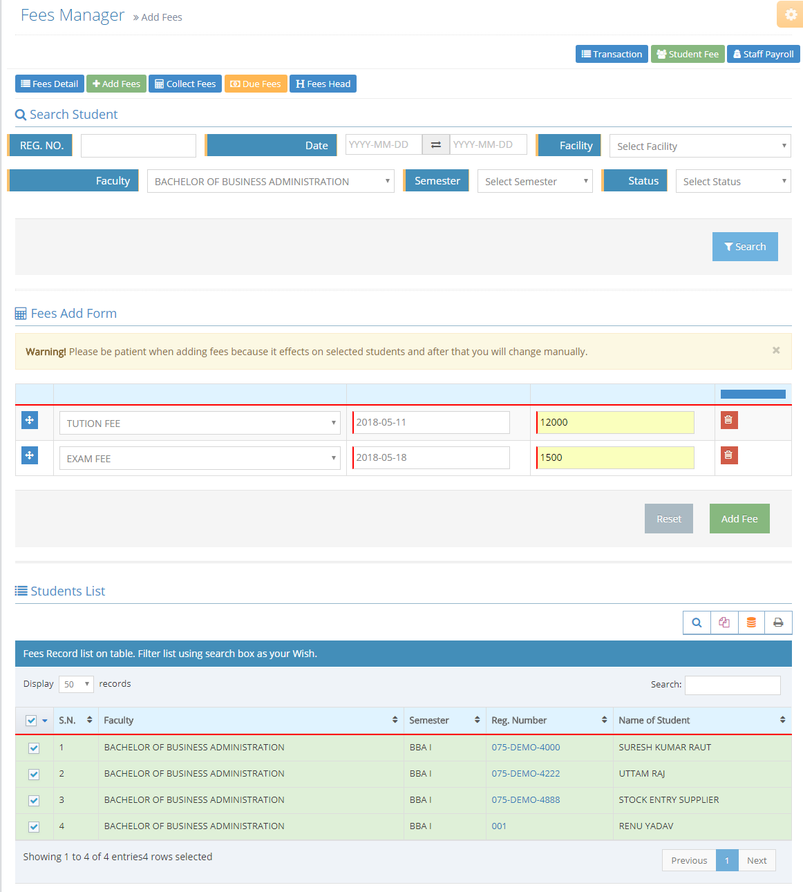 if you want to add more fees at a time repeate step No. 3 & 4.