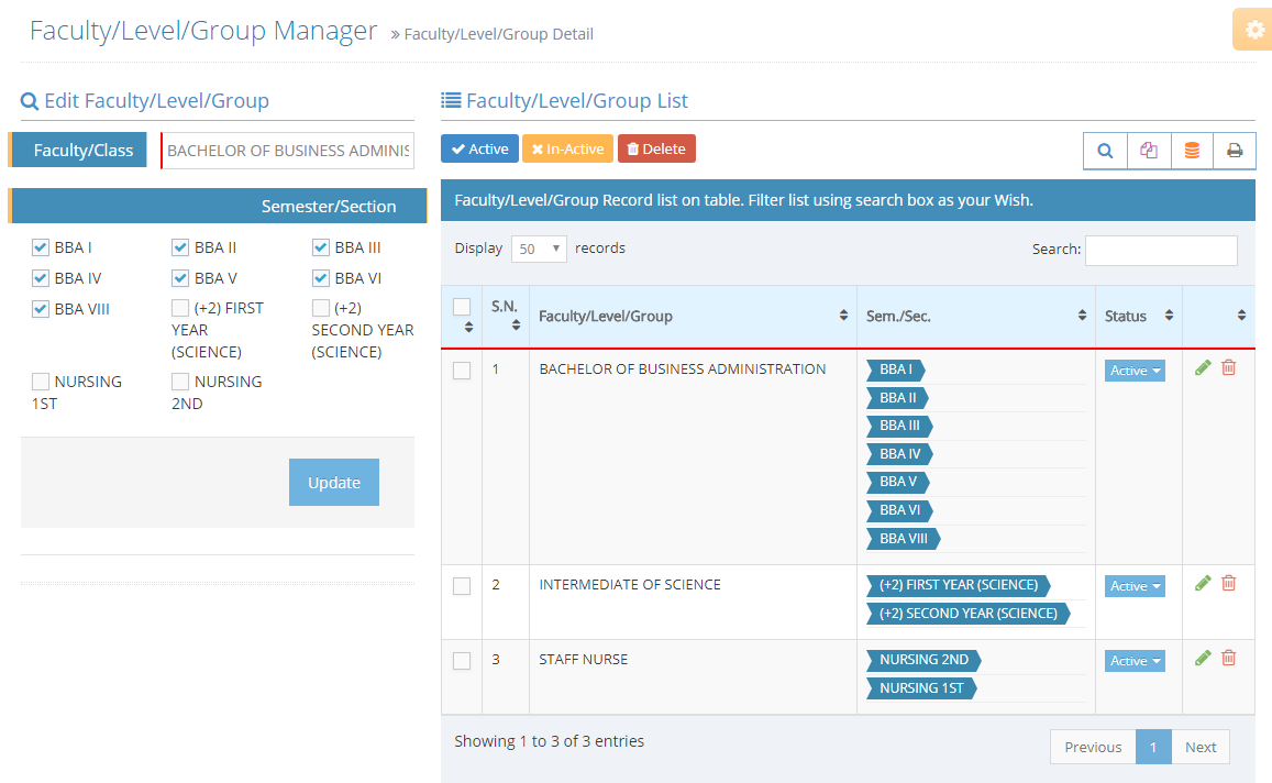 1.3.4. Faculty/Level/Class