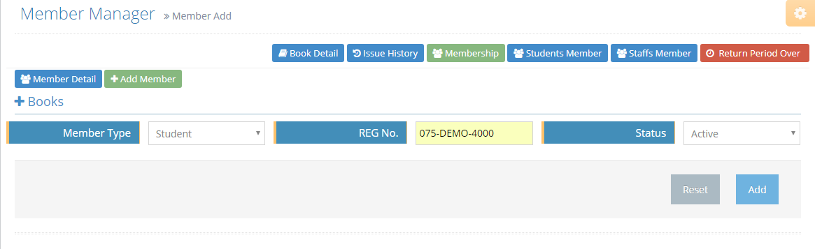 Help:if you input valid registration number Member is registered in Library. Also you can Edit Member from Memberlist on Member Detail.