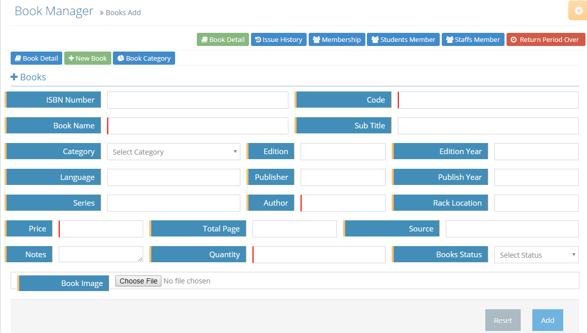 Fill up the necessary field on book add form