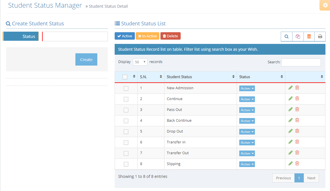 Type Student Status