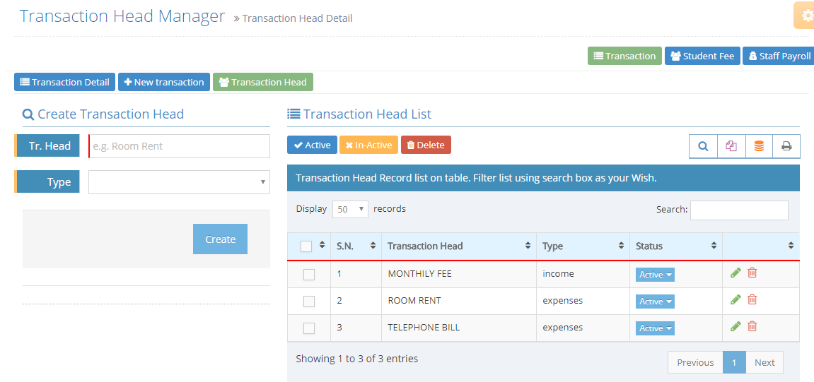 Before any transaction first you have create some transaction head