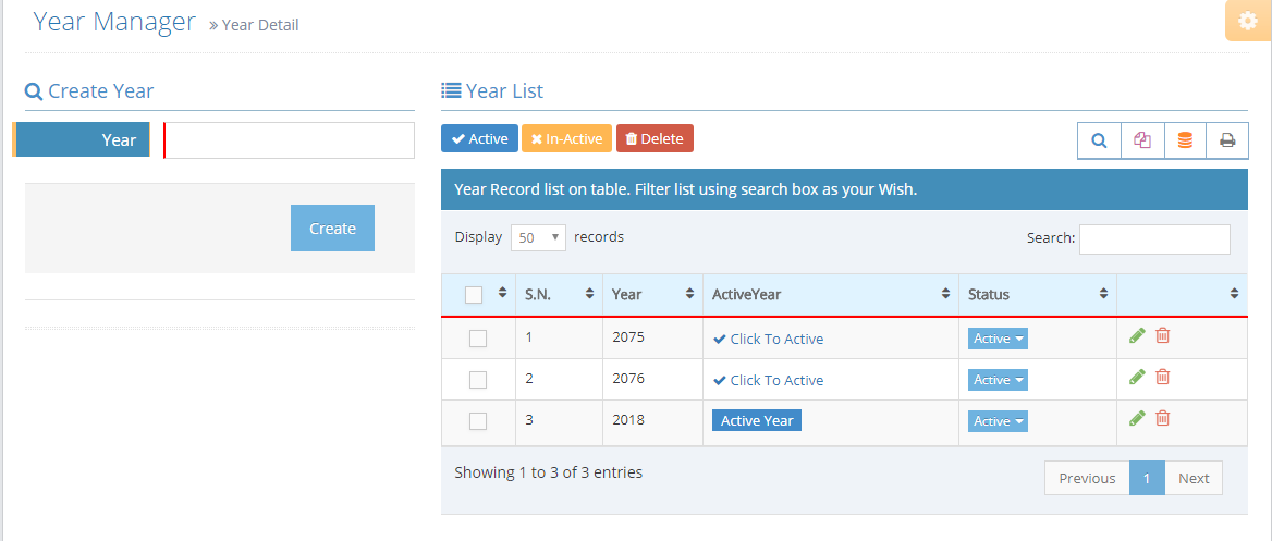if you wan to active year. Click on Click to Active Link on Year List Table